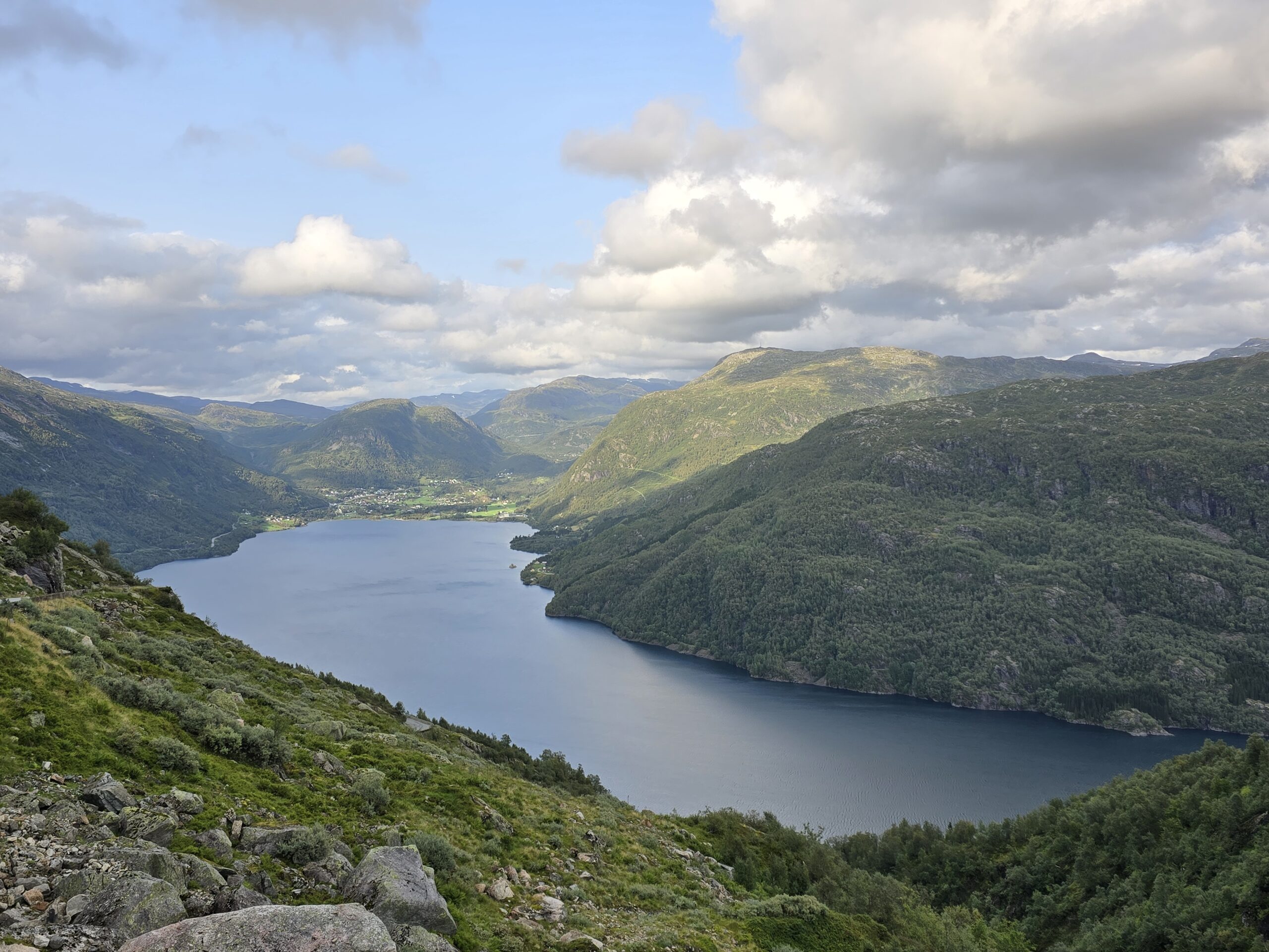 Tag 17 (MO) 18.08.25 (TKM471/RTK302) Odda – Sauda – Hara – Grungedal – Drammen Zwei Varianten stehen zur Wahl, noch mal ein tolles Hochplateau und schöne Strecken entlang der Fjorde weit im Hinterland. Danach Richtung Oslo vorbei an Seen und Wintersportlandschaften bis Drammen. Eine schöne aber straffe Tagestour entlang die aber je nach Lust und Wetter deutlich gekürzt werden kann. Auf jeden Fall sehen wir noch den Låtefossen und Røldal, Hotel in Dramen(F).